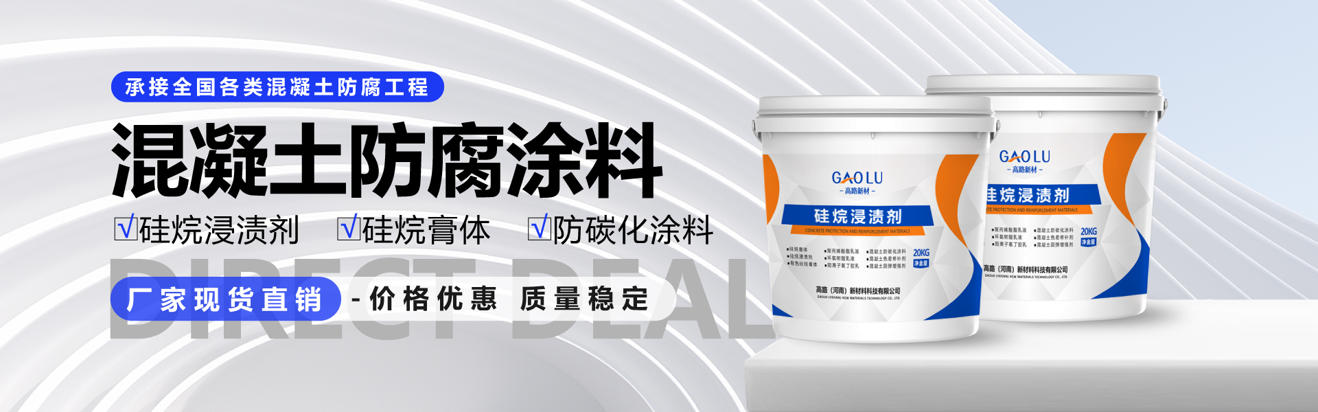 高路新材料生产的硅烷浸渍剂是一种高效的混凝土防护涂料,常见用于高速护栏、桥梁防撞墙、桥墩、港口码头、···...